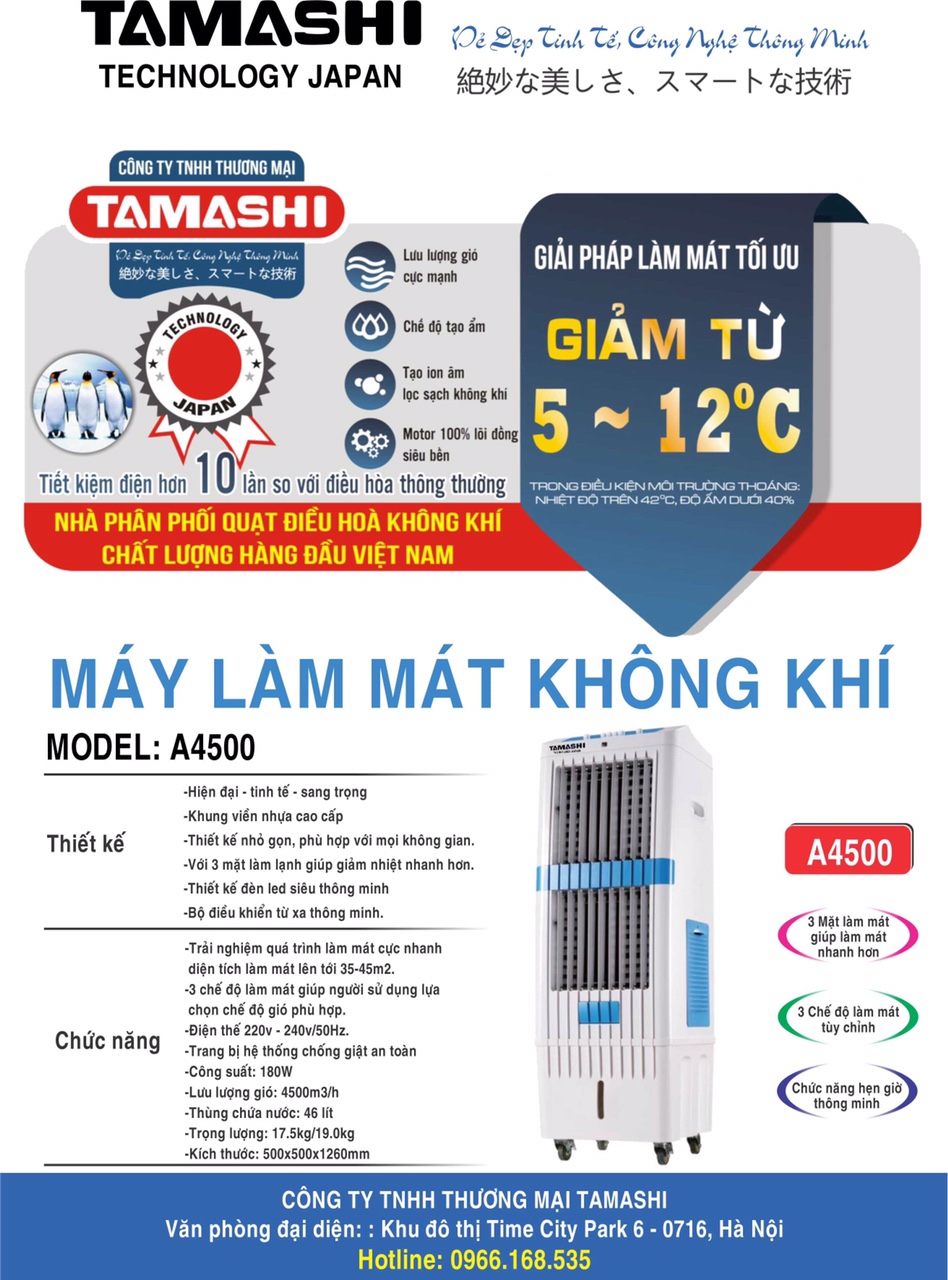 MÁY LÀM MÁT KHÔNG KHÍ – QUẠT ĐIỀU HÒA TAMASHI A4500