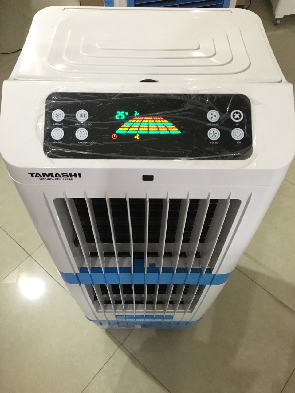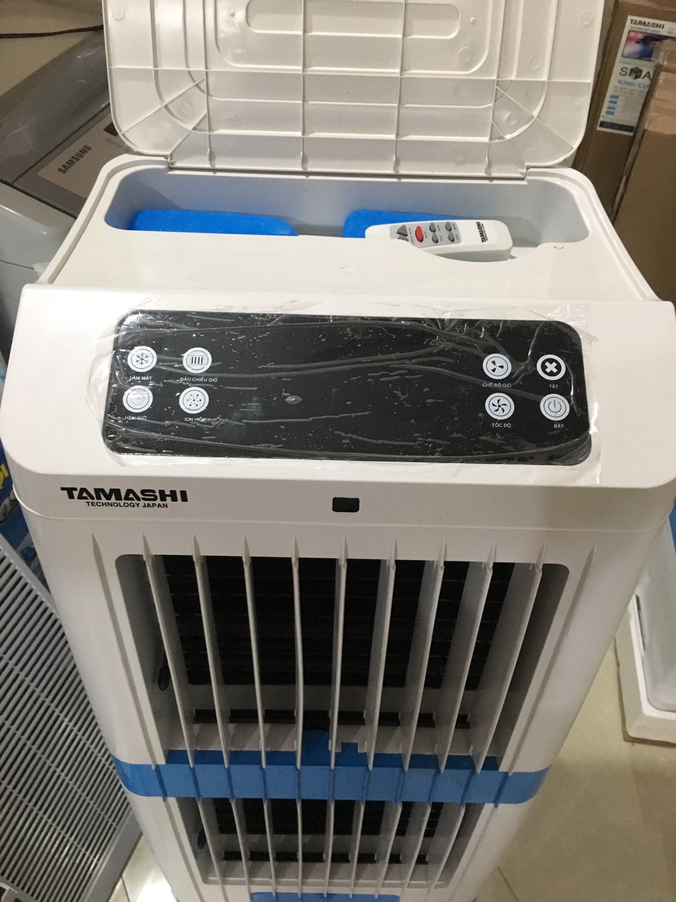 Máy làm mát không khí TAMASHI A4500 có điều khiển từ xa, phạm vi hoạt động trong khoảng 35m2 đến 45m2 . Sản phẩm còn có 4 bánh xe lớn nên rất dễ di chuyển.